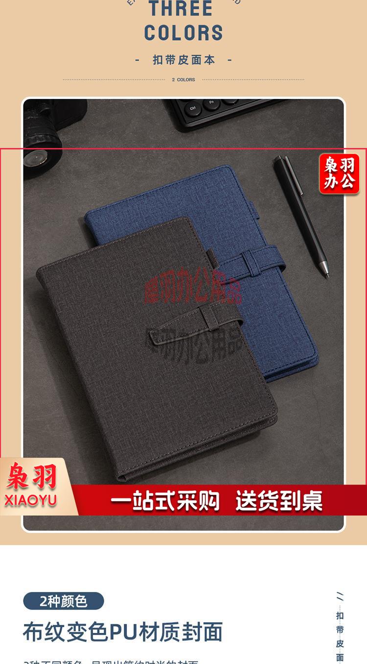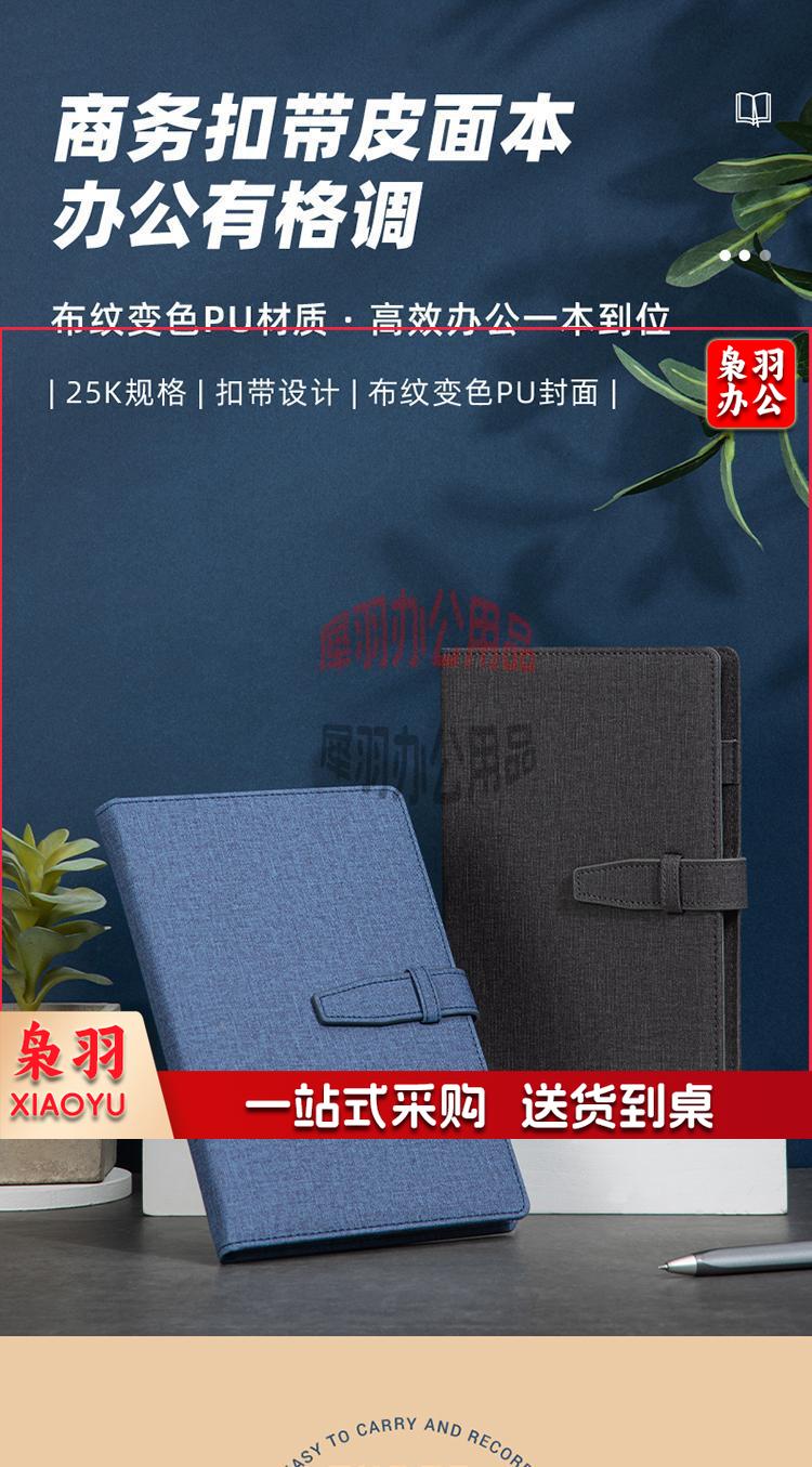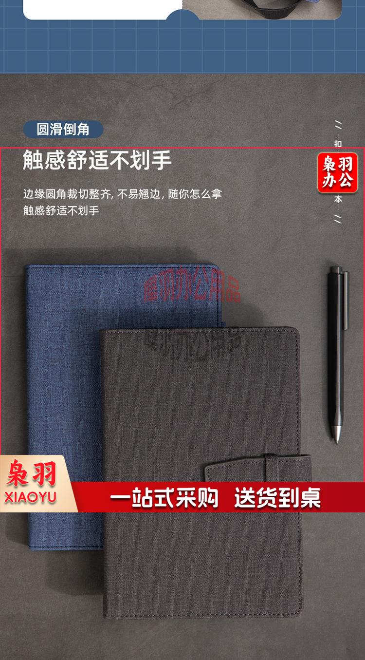 得力(deli)布艺扣带皮面本笔记本子 加厚会议记事本办公用品文具 25K96张 深蓝色 3171