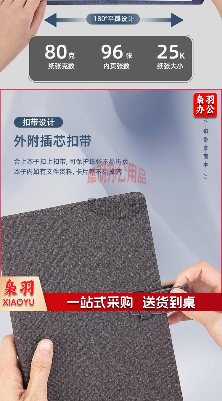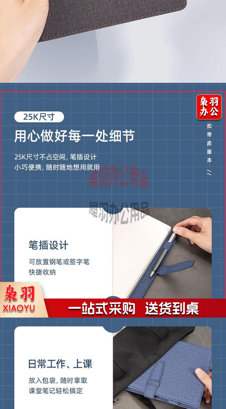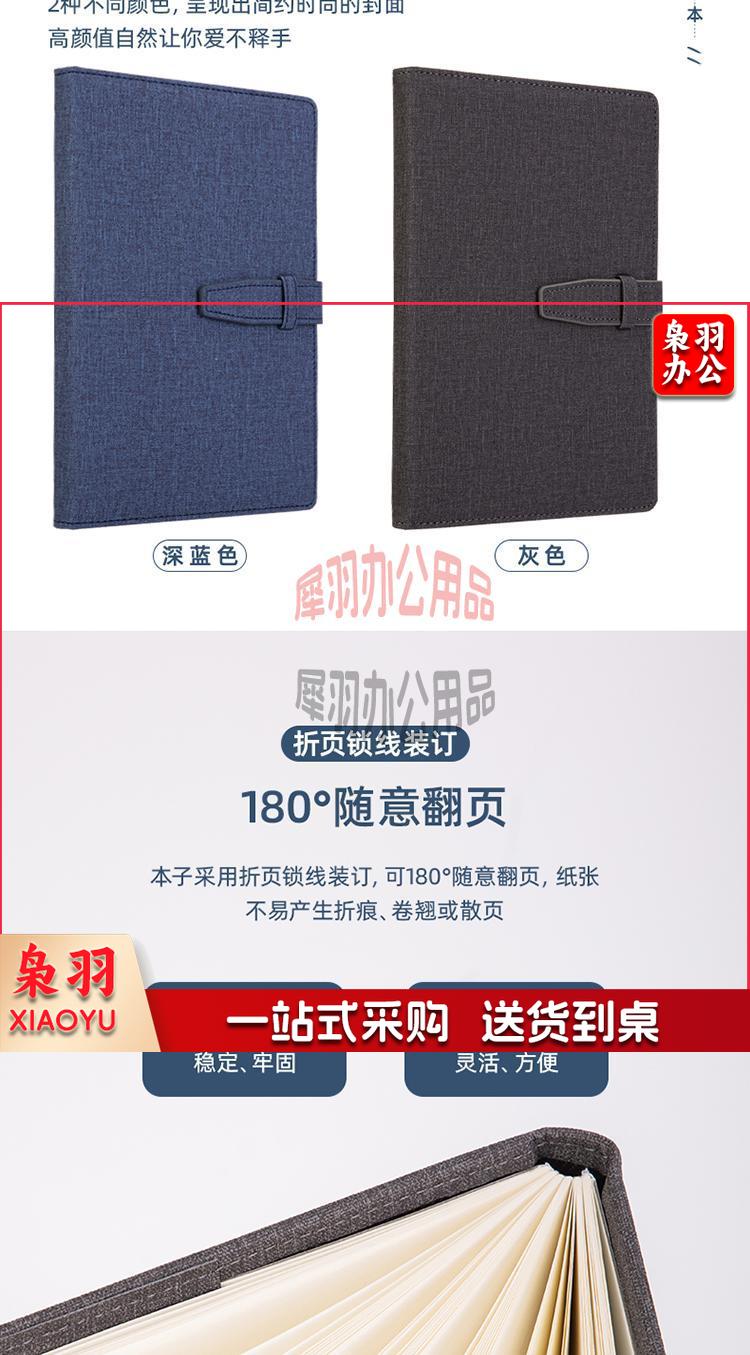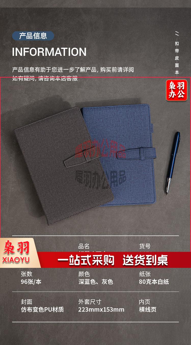 得力(deli)布艺扣带皮面本笔记本子 加厚会议记事本办公用品文具 25K96张 深蓝色 3171
