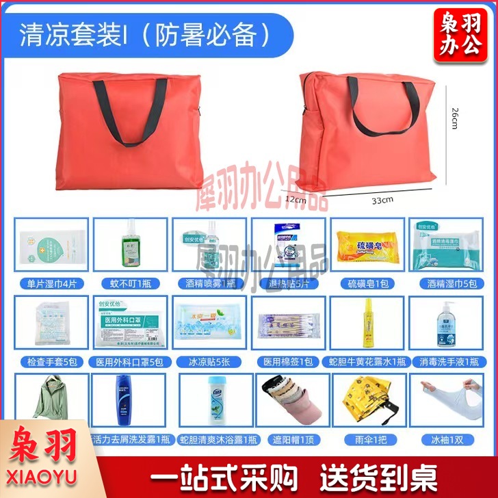可定制版清凉防暑降温洗发水沐浴露湿巾花露水雨伞冰袖防晒衣蚊不叮套装I款