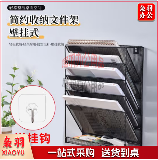 国为 黑色金属网状文件盘整理资料架办公文件盘文件筐 文件栏资料整理收纳文件架 壁挂五层/五栏 黑色