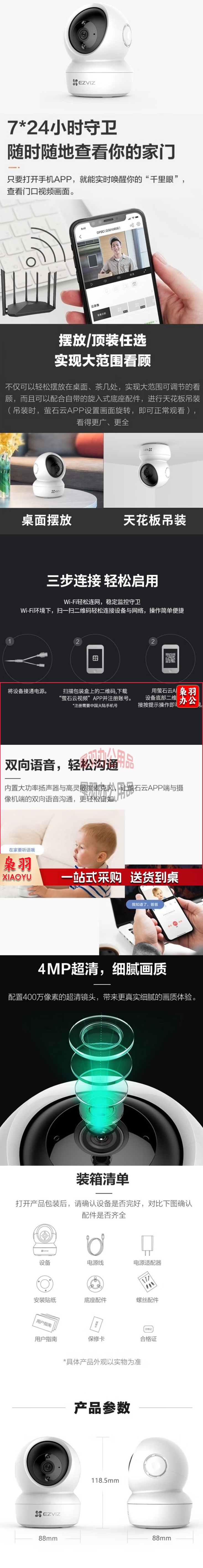 萤石 H6C-4MP智能无线家用监控摄像头wifi 标配+128G卡