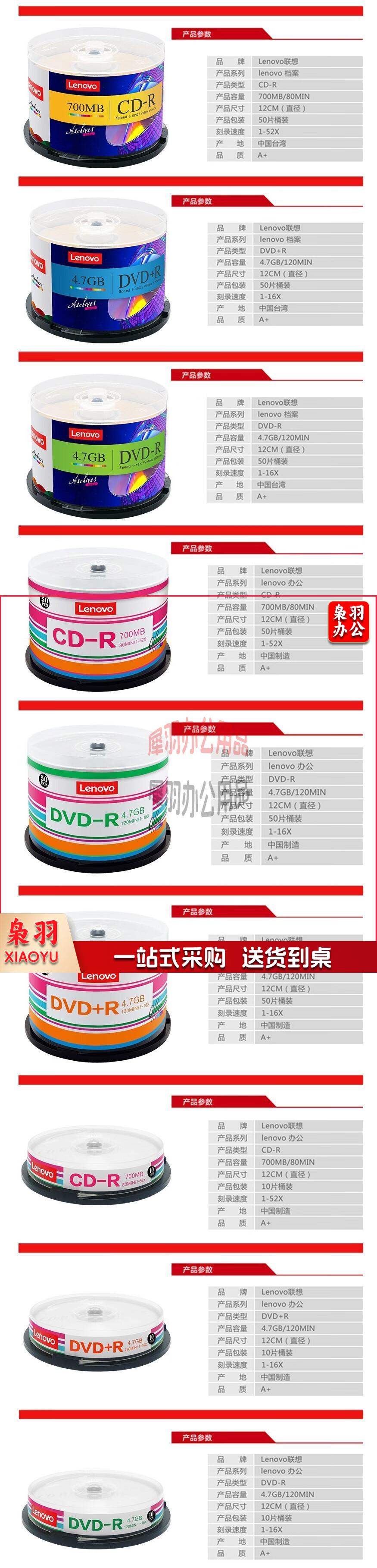 联想(lenovo)DVD-R 盘面可打印系列16速 4.7G光盘/刻录光盘/空白光盘/刻录碟片 桶装50片 刻录盘