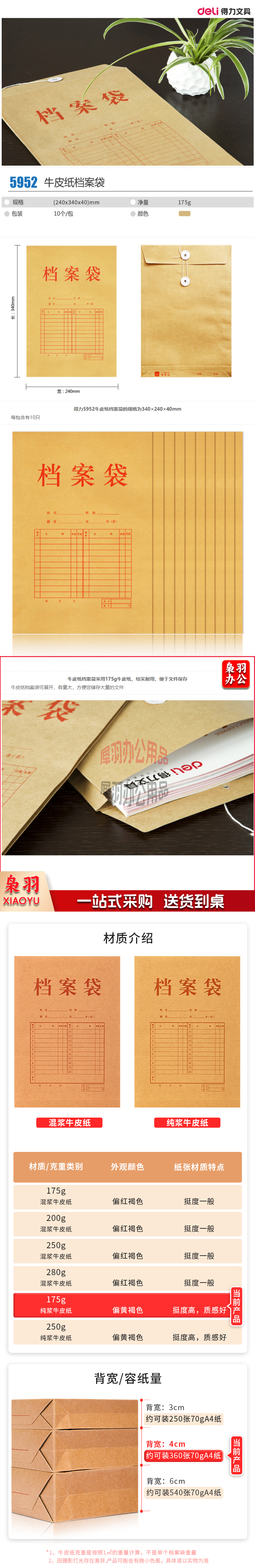 得力5952牛皮纸档案袋(纯浆)(米黄色)(10只/包)
