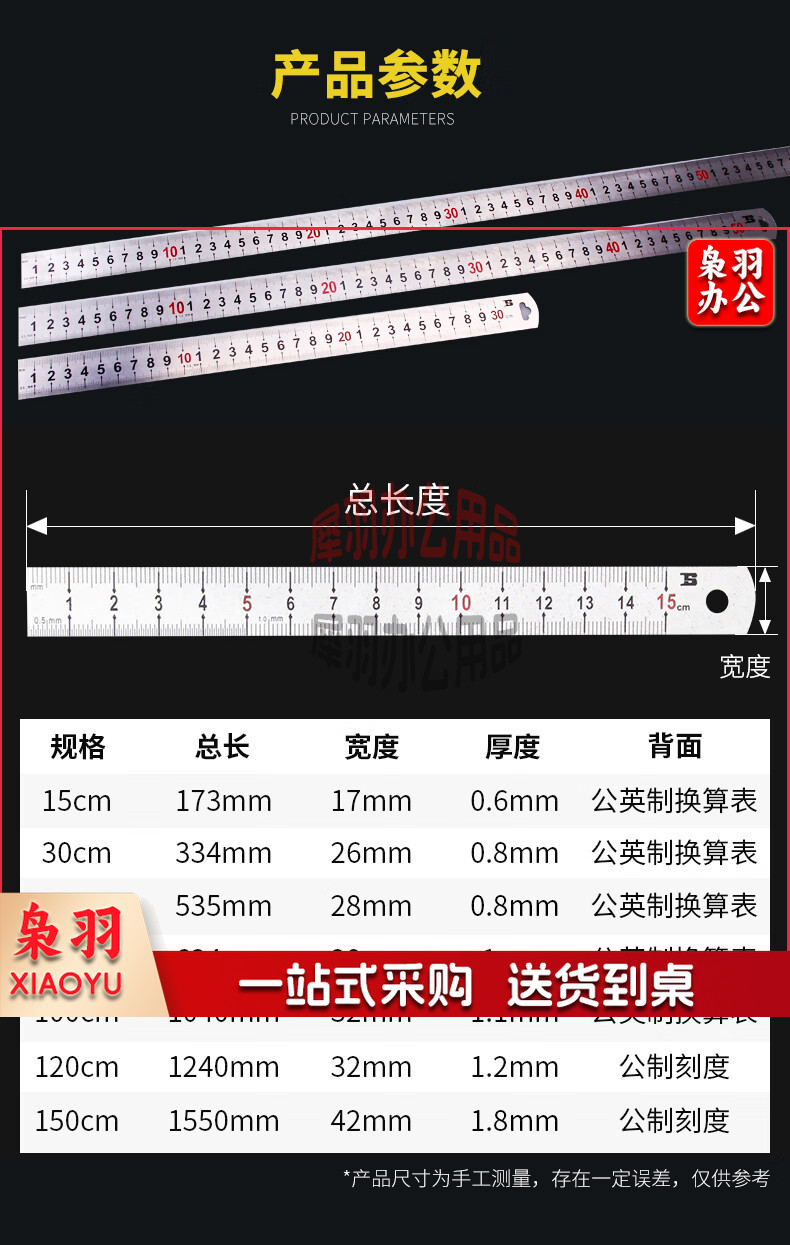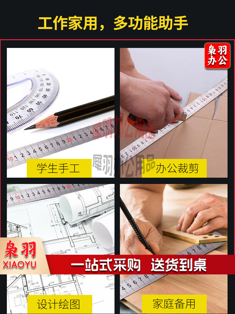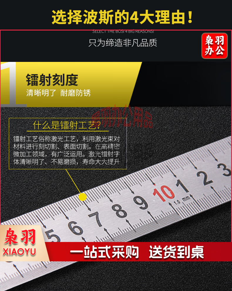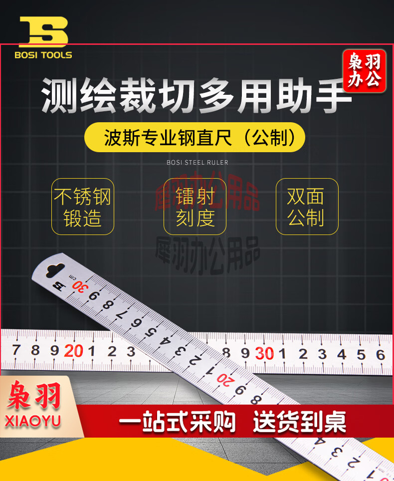 波斯(BOSI)不锈钢直尺刻度尺公制刻度绘图钢尺 BS170830(30CM)