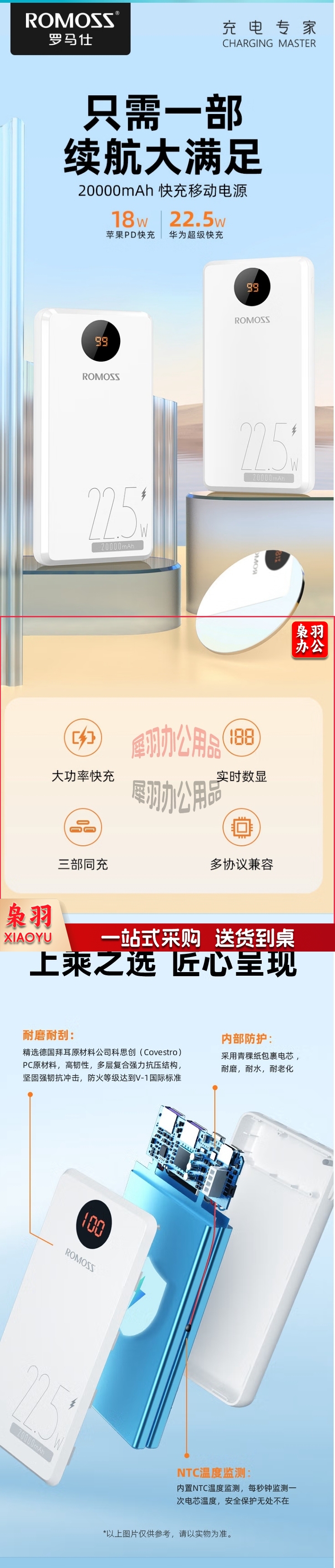 罗马仕充电宝20000毫安时22.5W超级快充智能