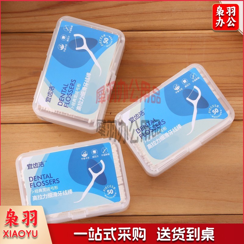 宜齿洁 牙线高拉力细滑牙线棒经典宽阔弓形 50支每盒