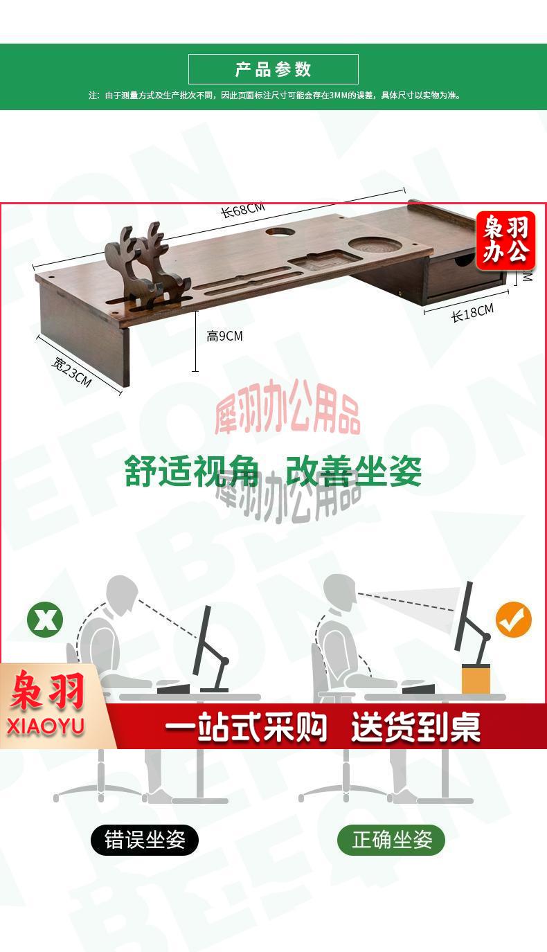 倍方 电脑显示器增高架 小鹿单抽屉款胡桃木色 电脑支架 置物架 电脑底座 键盘收纳架 显示器支架 显示器底座