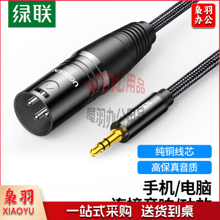 绿联15238 3.5mm转卡侬公头音频线公对公连接线 手机电脑接音响功放调音台转接线 3.5公转卡农公头1米