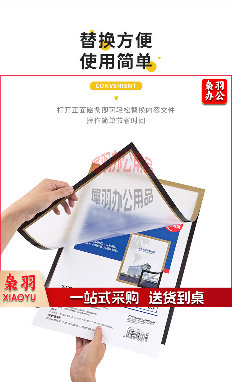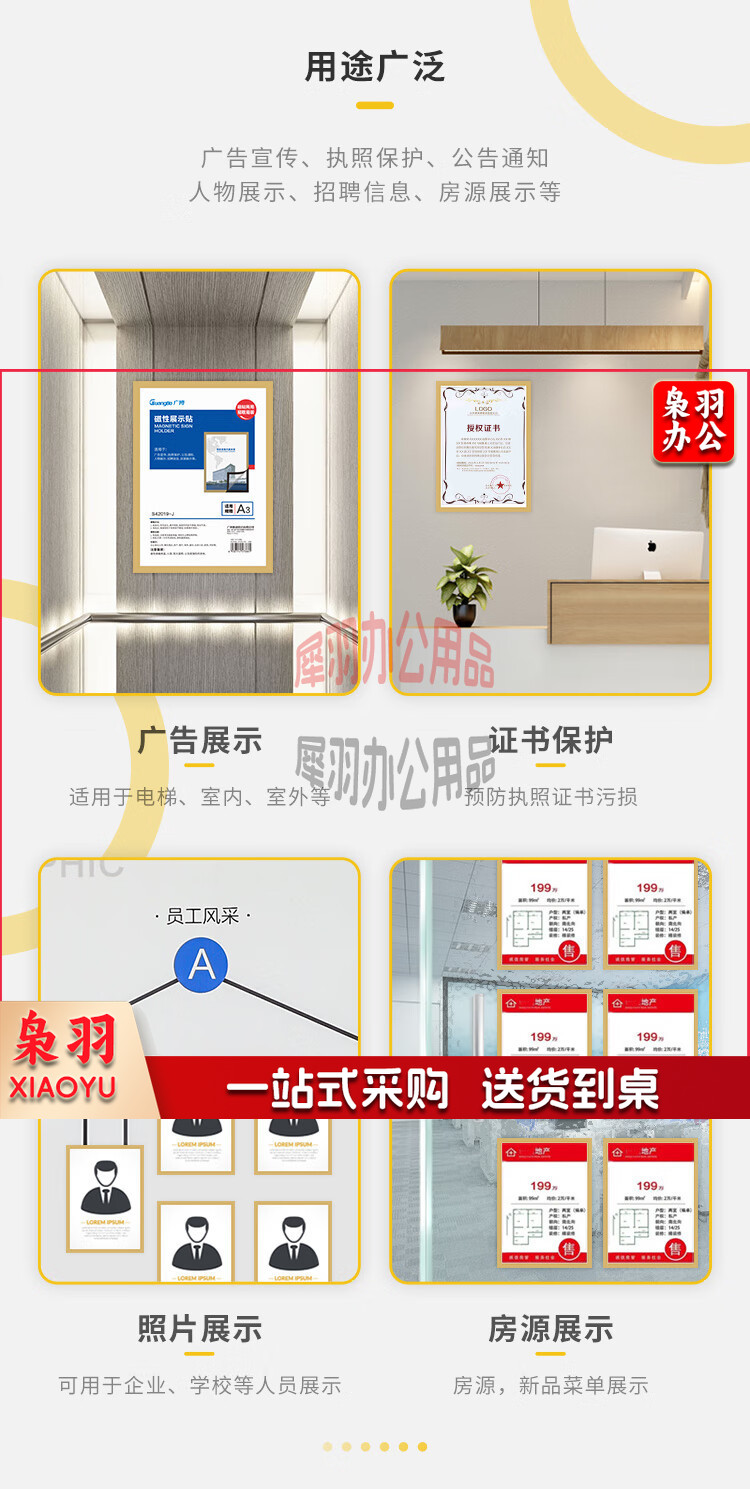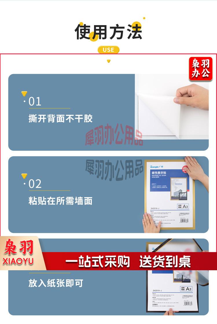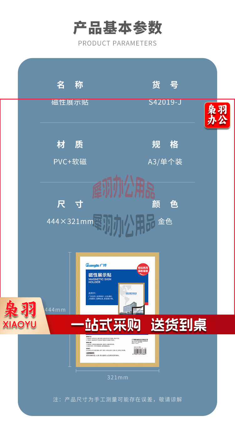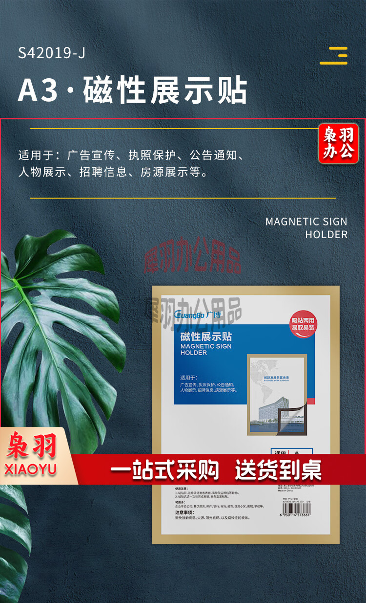 广博(GuangBo)A3磁性展示贴 营业执照框透明文件保护套卡套 磁力贴公告栏通知贴纸 办公用品金色1张 S42019