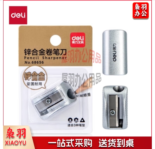 得力(deli)锌合金学生卷笔刀新年礼物 锋利耐用铅笔削笔刀 开学文具削笔器 银色 68656