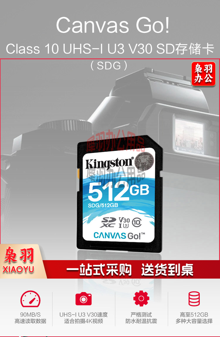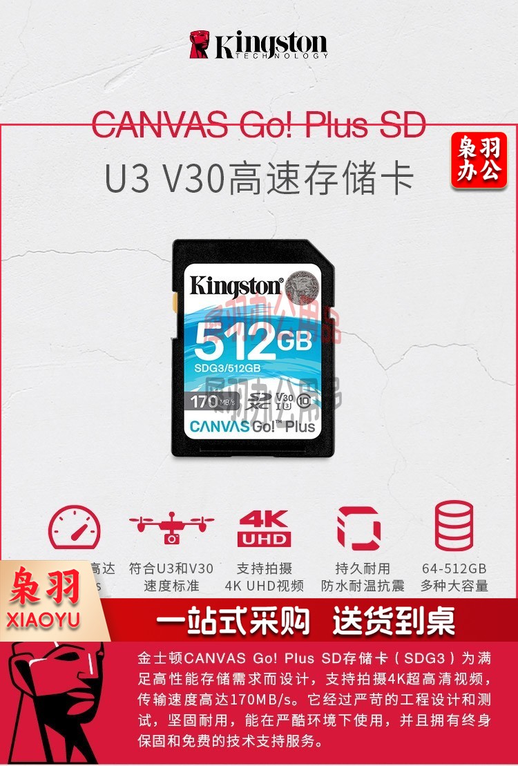 金士顿(Kingston)SDG3/64GB SD存储卡 U3 V30 相机内存卡 高速sd卡大卡 4K超高清拍摄 读速170MB/s 写速90MB/s