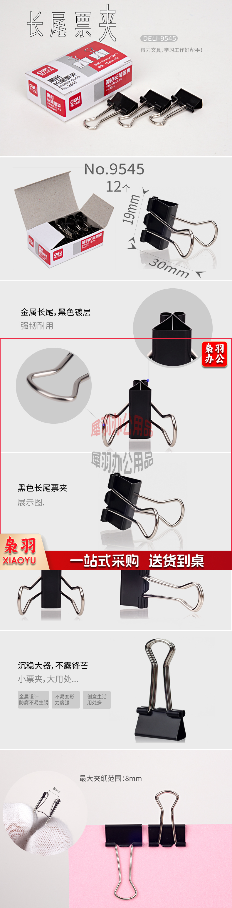 得力9545 19mm金属黑色长尾夹 票据夹子 燕尾夹 票据夹 12只/盒