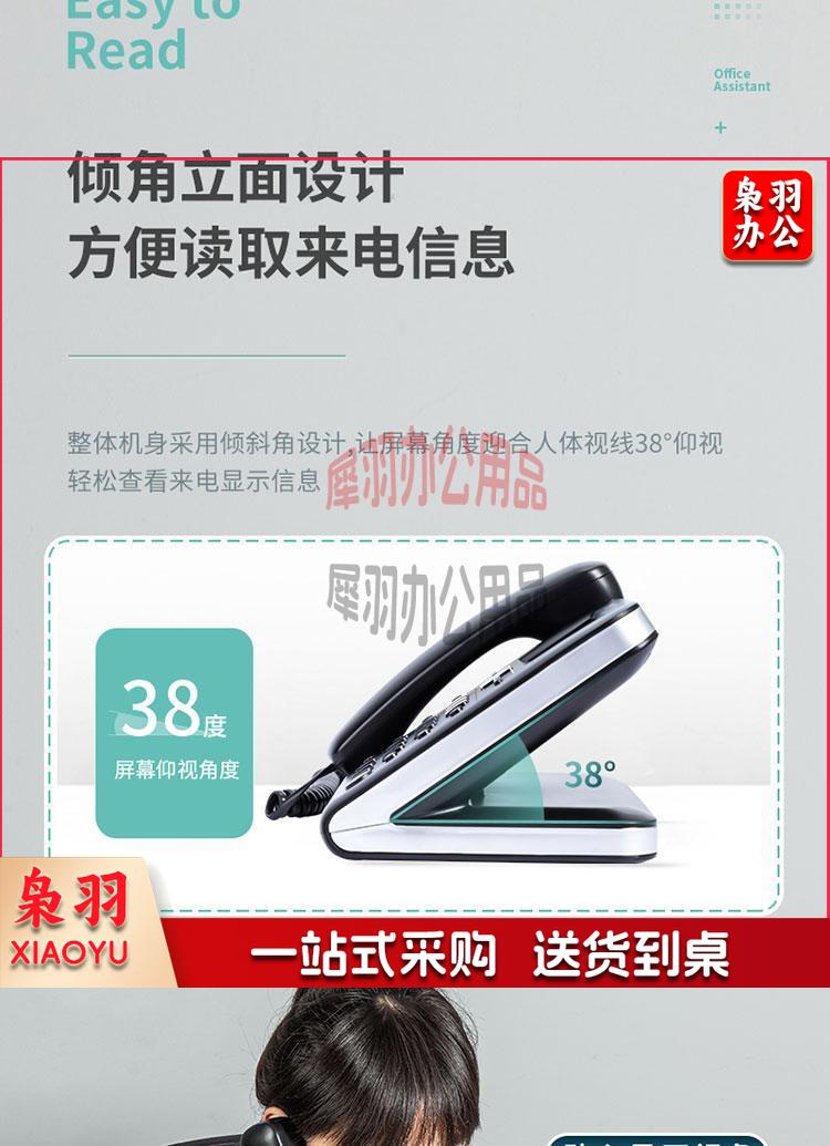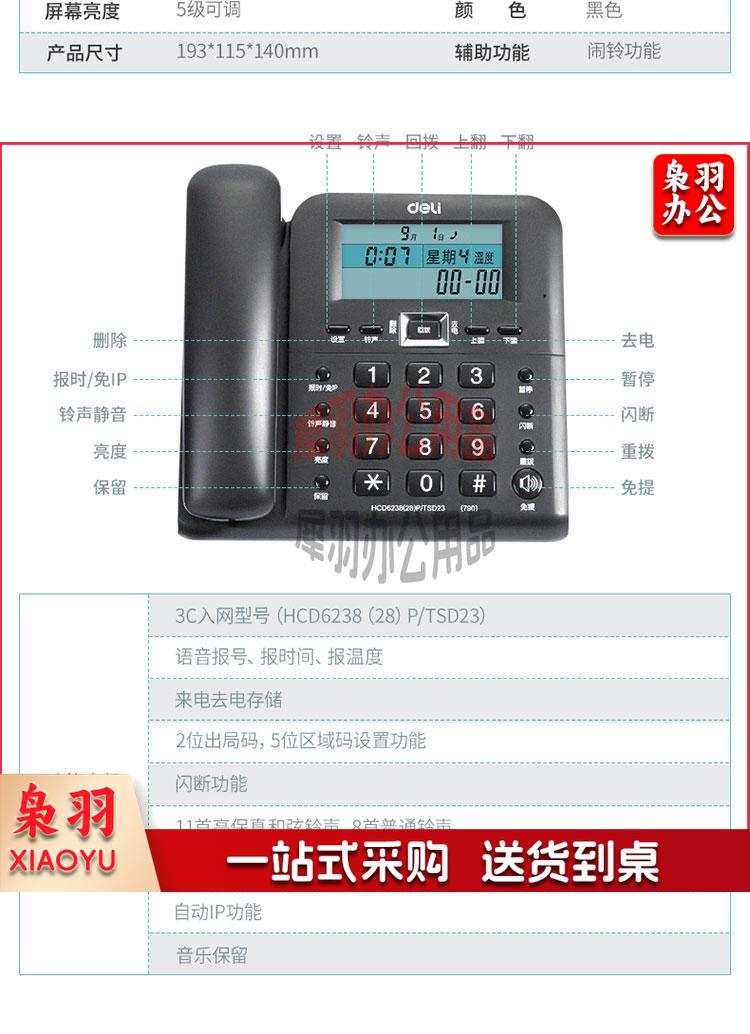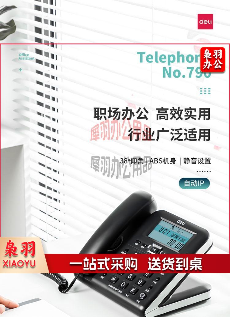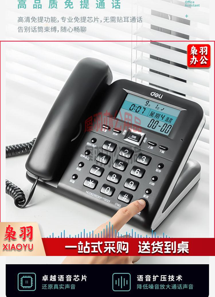 得力(deli) 电话机座机 固定电话 办公家用 38°倾角 来电显示 790黑