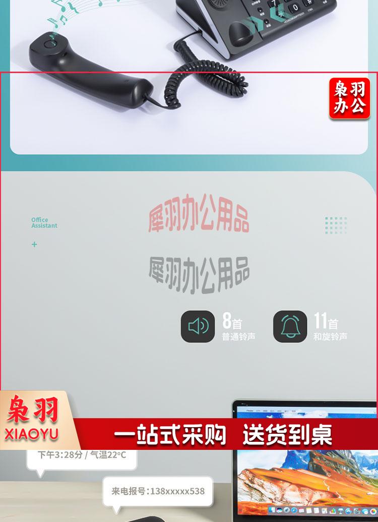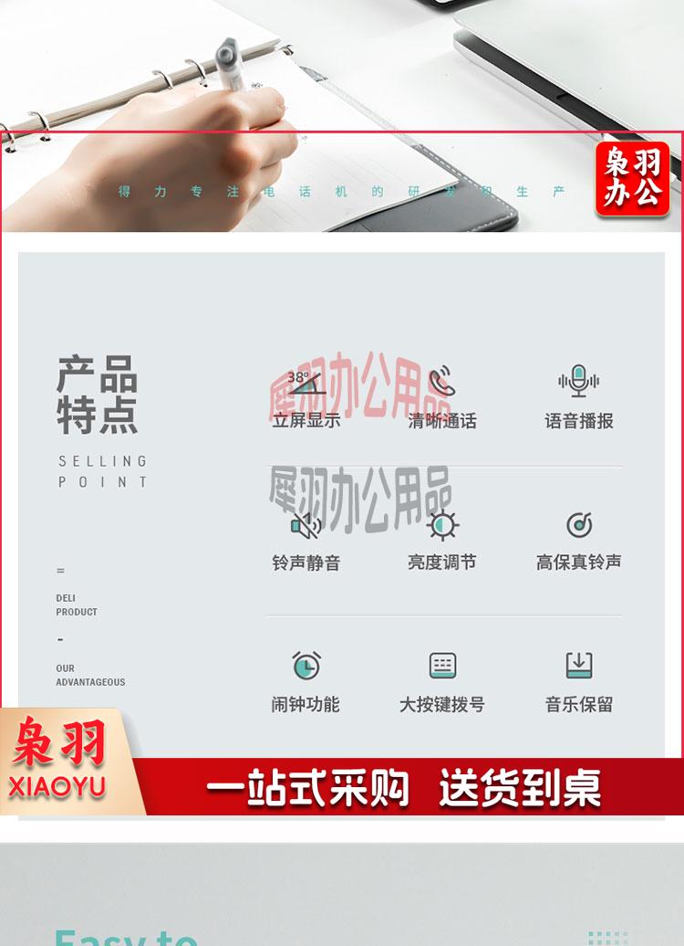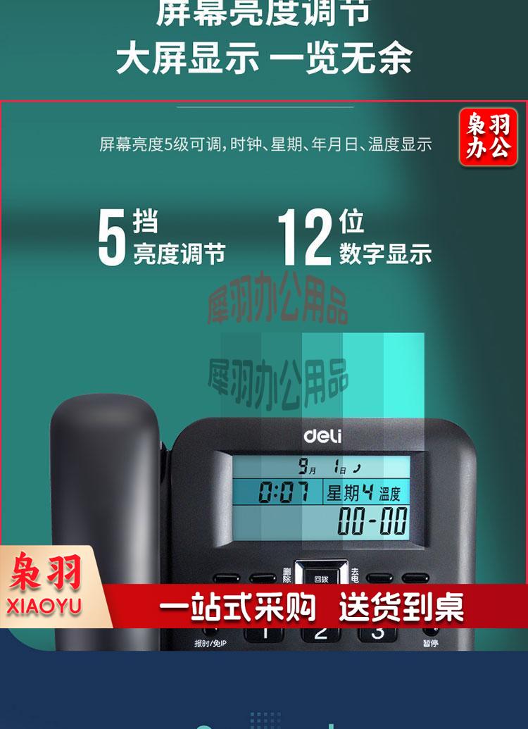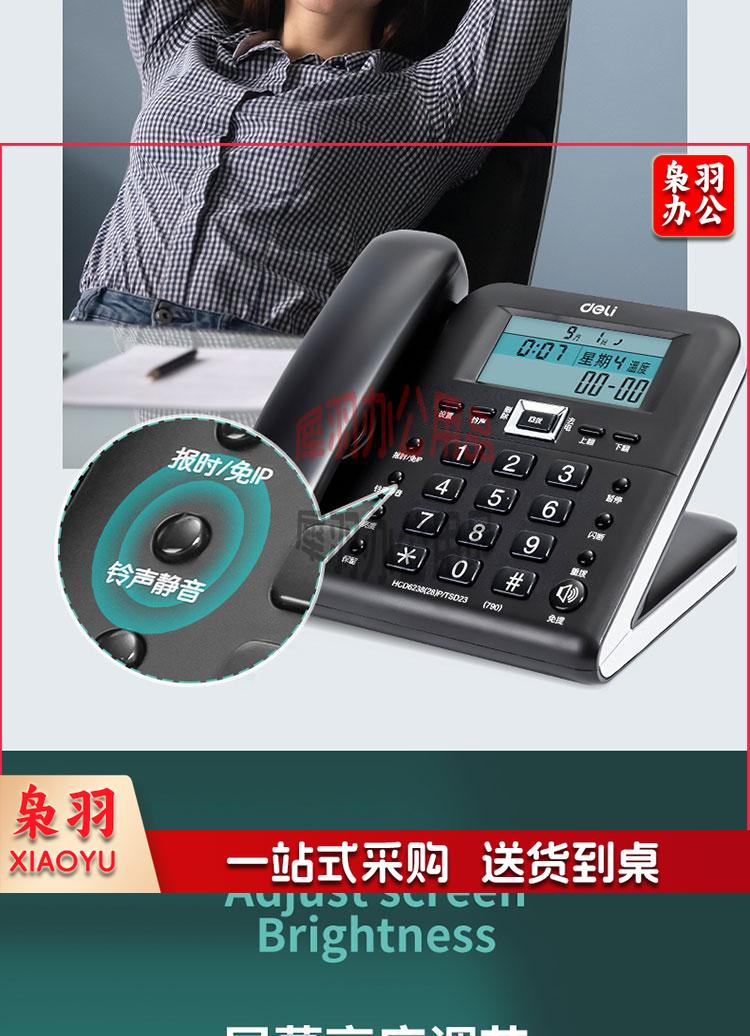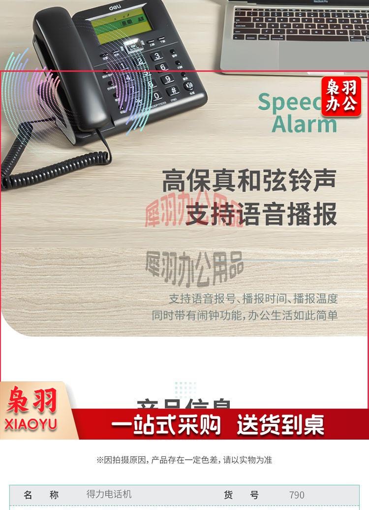 得力(deli) 电话机座机 固定电话 办公家用 38°倾角 来电显示 790黑