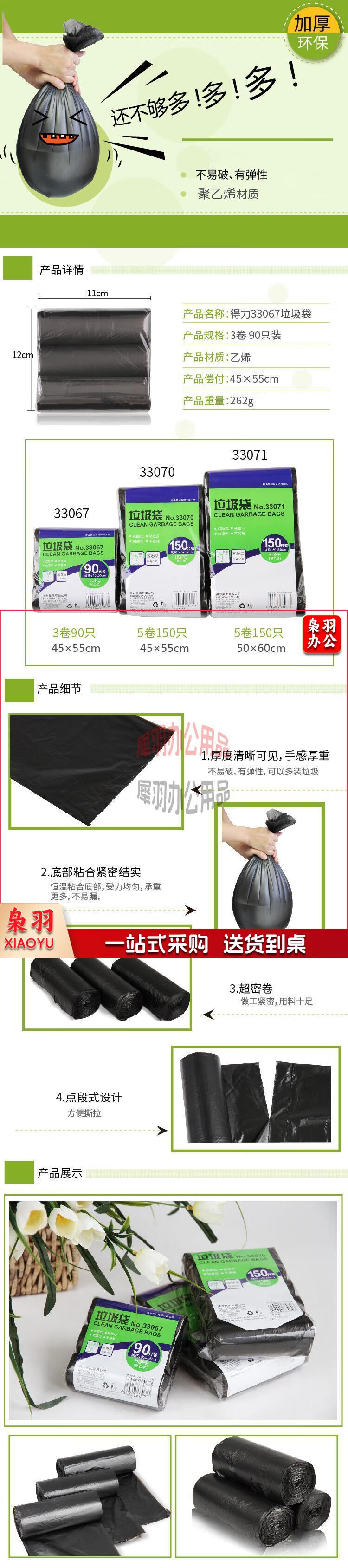 得力(deli) 33067 点段式办公生活加厚垃圾袋45*55cm 垃圾分类 办公用品 黑色 3卷/包)3包装