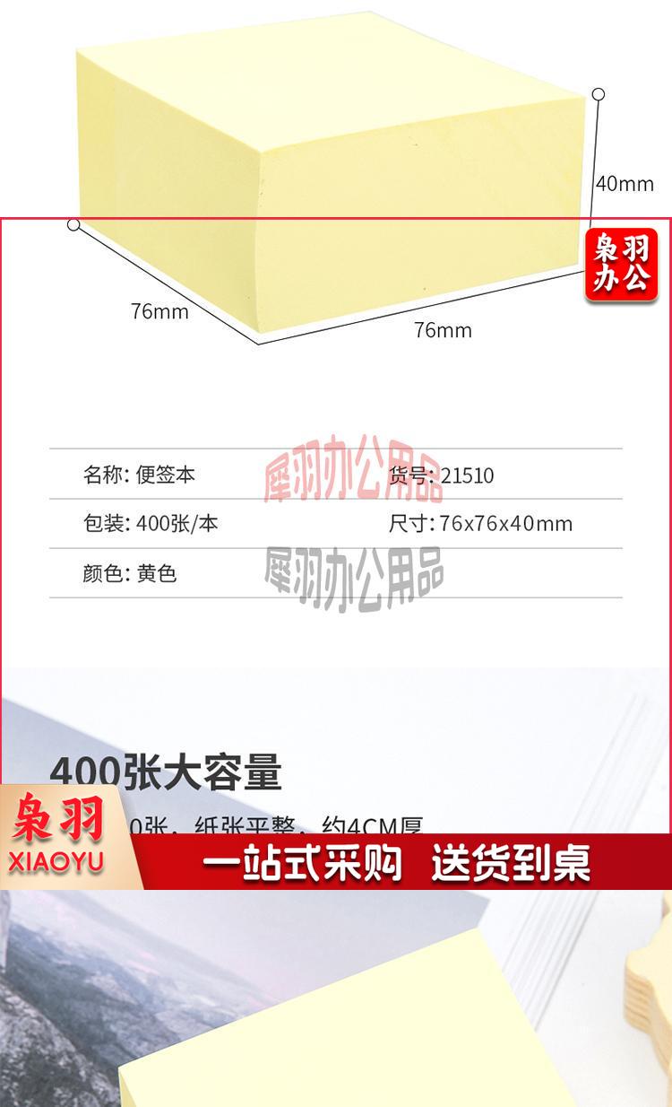 得力(deli)400张黄色简约便签纸便利贴 76*76mm便签本/ 记事贴办公用品 21510