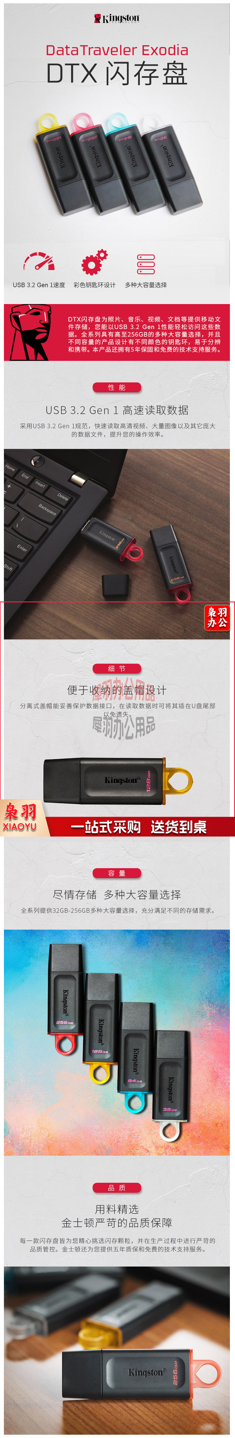金士顿(Kingston)DTX/256GB U盘 USB3.2 Gen 1 DTX 256GB 黑色