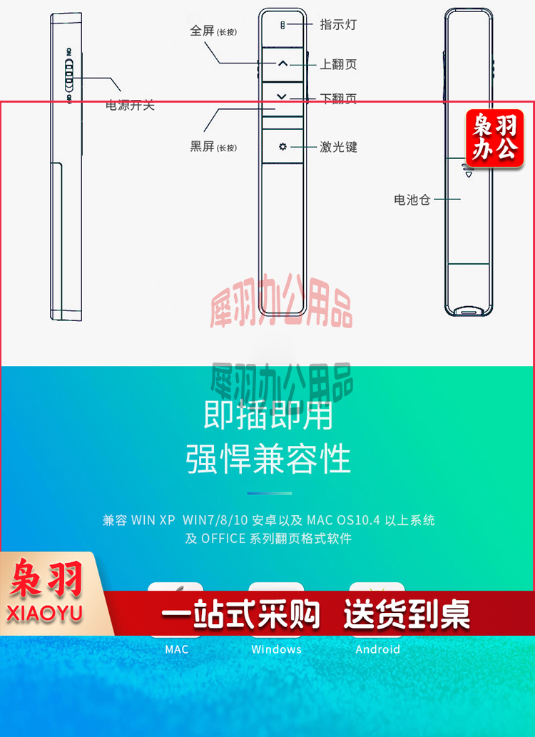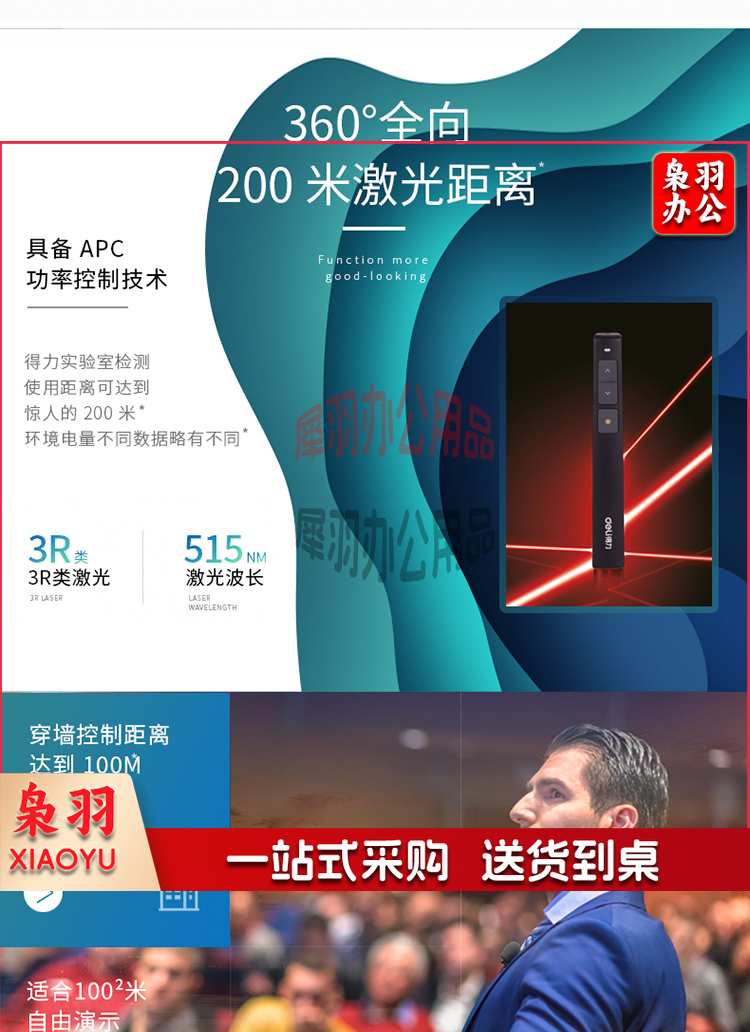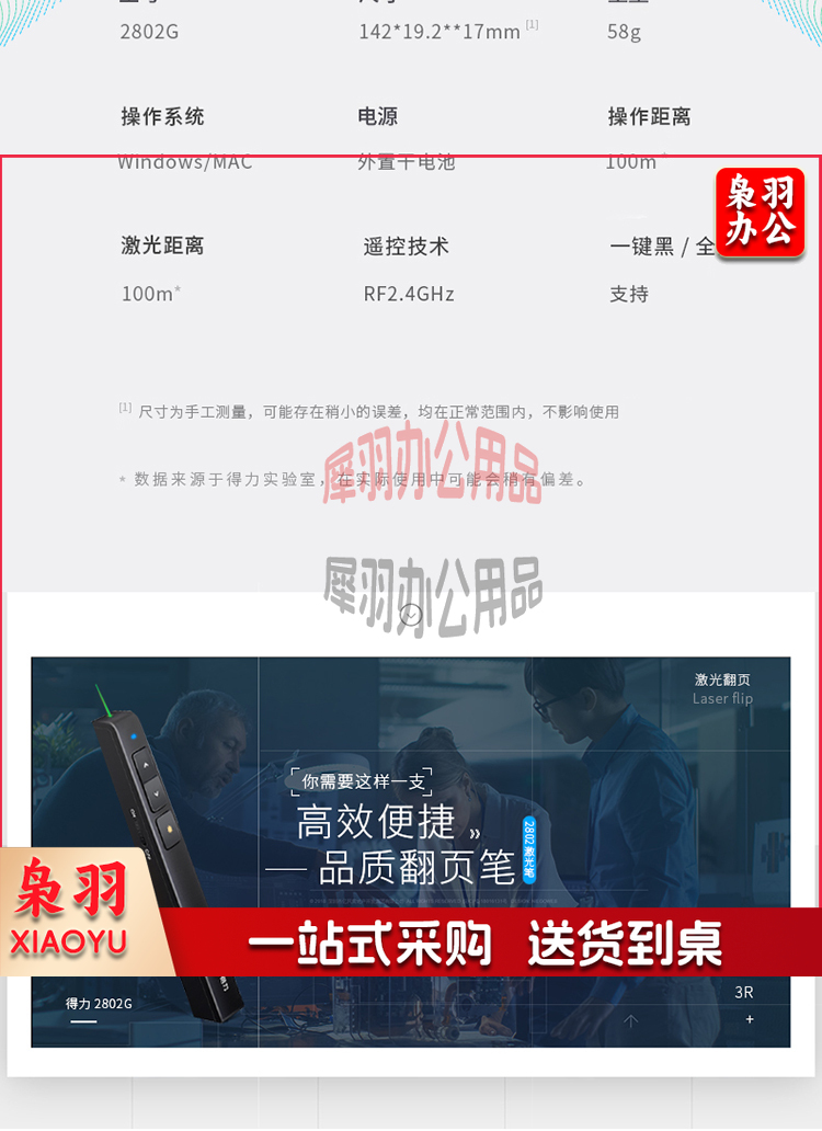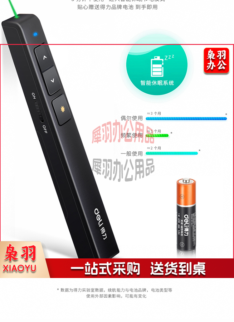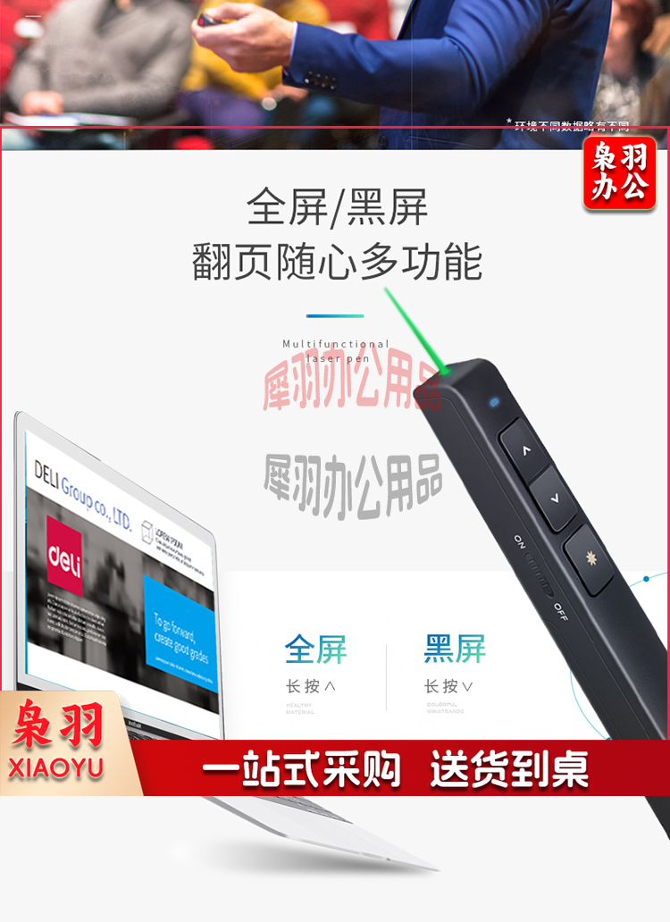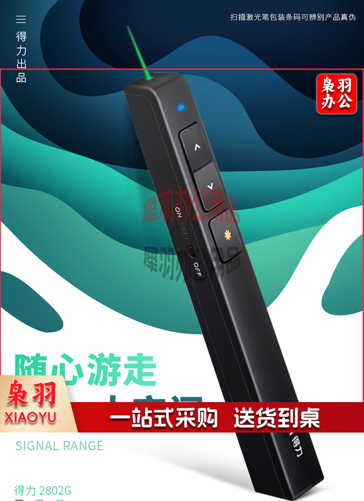 得力 (deli)绿色光100m控制翻页笔电子笔演讲笔 PPT翻页笔 投影笔激光翻页笔教鞭 无线演示翻页器 黑色 2802G
