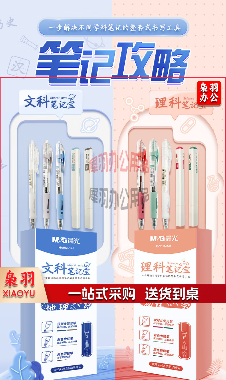 晨光(M&G)HAHM2125B 1008刷题笔套装(彩色荧光笔*2+黑色按动刷题笔*1+彩色标记中性笔*2) 文科笔记宝