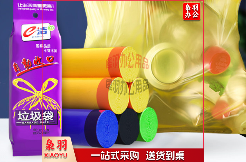 e洁自动收口垃圾袋 加厚 手提式 50*55cm 10卷150只 黄绿蓝黑四色随机 zxk-230313141008