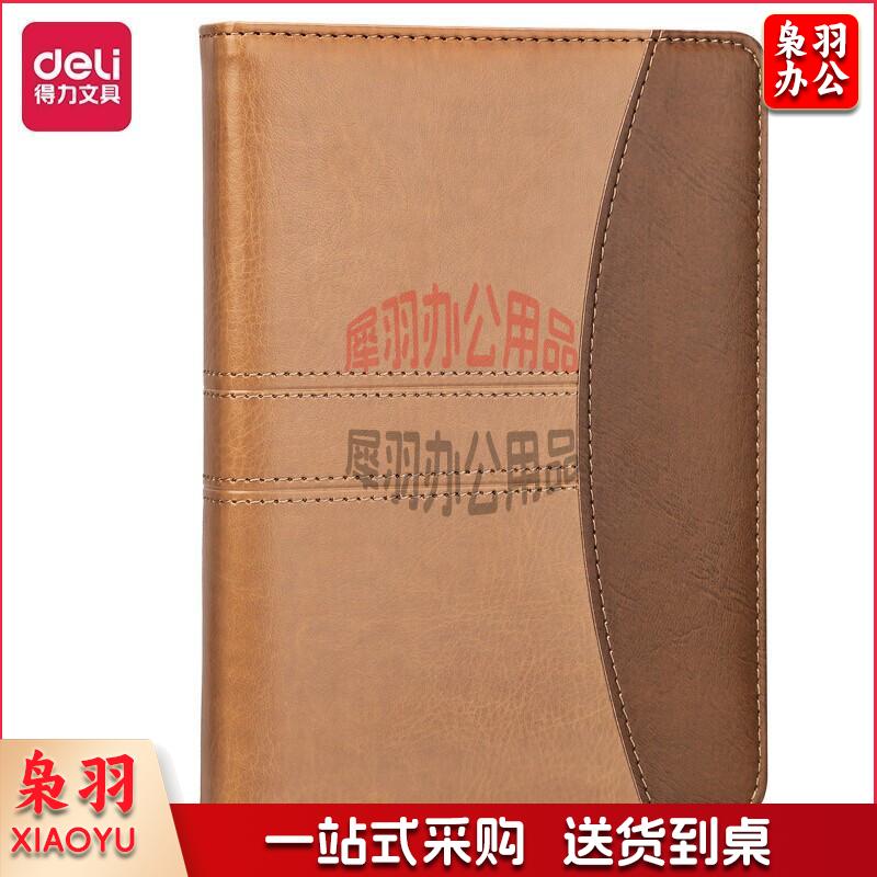 得力(deli)25K160张加厚复古棕咖拼接皮面本 会议记事本笔记本子文具办公用品 7921