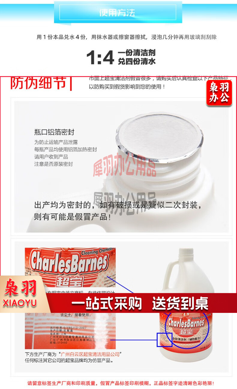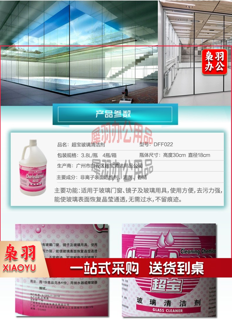 超宝(CHAOBAO)DFF022玻璃清洁剂酒店宾馆商用玻璃除污剂写字楼强力清洗玻璃水除污剂门窗晶亮玻璃3.8L/瓶