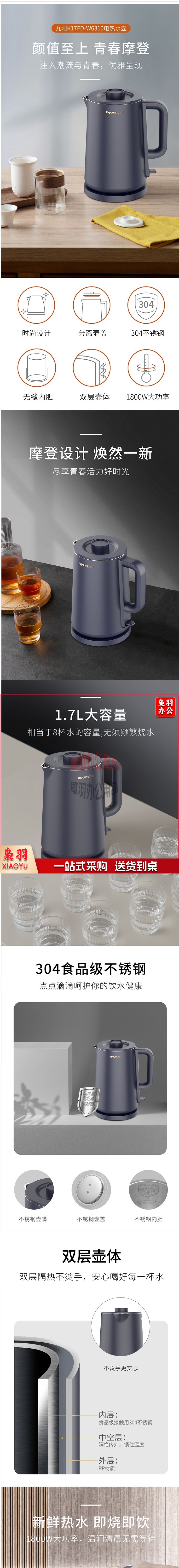九阳电水壶烧水壶(Joyoung) 热水壶 热水壶烧水壶电水壶1.7L无缝内胆双层锁温烧水壶防烫烧水壶家用电热水壶K17FD-W6310
