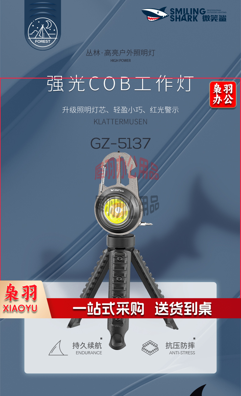 微笑鲨GZ-5137 迷你超亮工作灯充电多功能汽车维修灯高亮度小手电筒便携户外应急随身钥匙扣灯