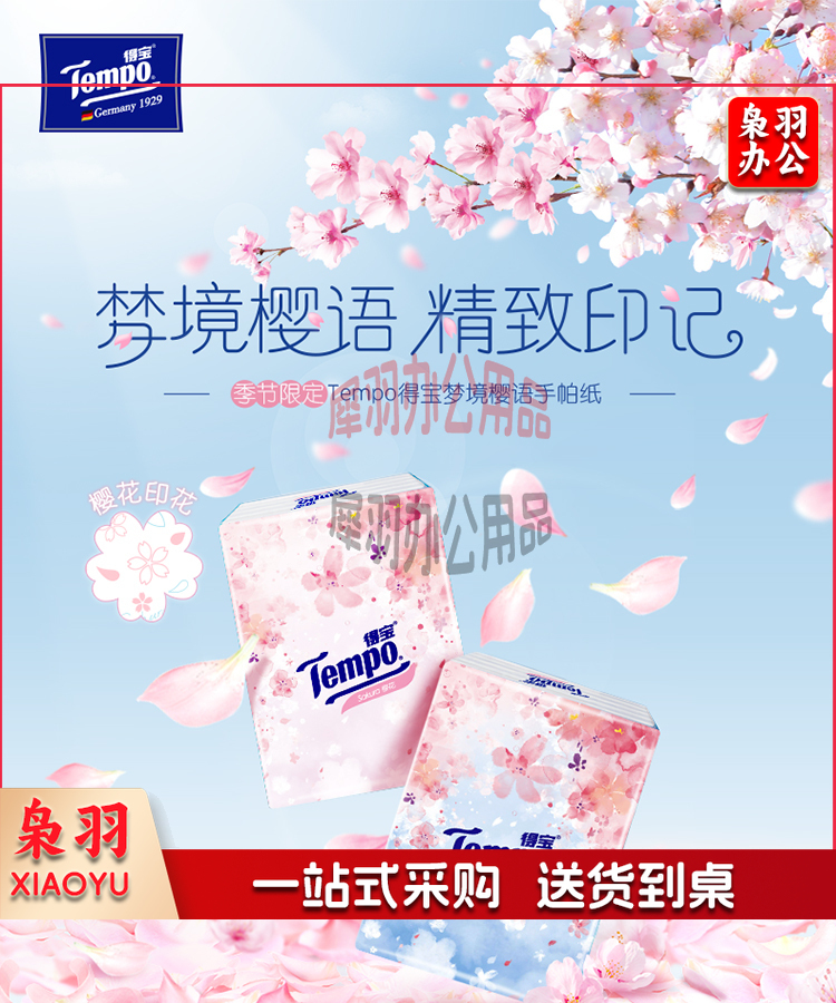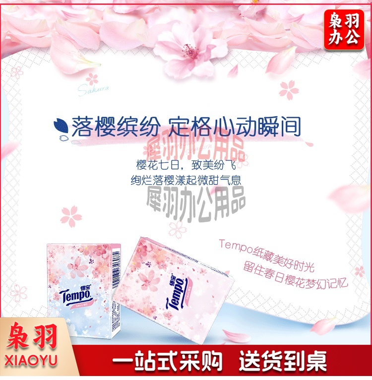 得宝(TEMPO)手帕纸 樱花味4层*7张*12包迷你樱花限定款纸巾小包 面巾纸