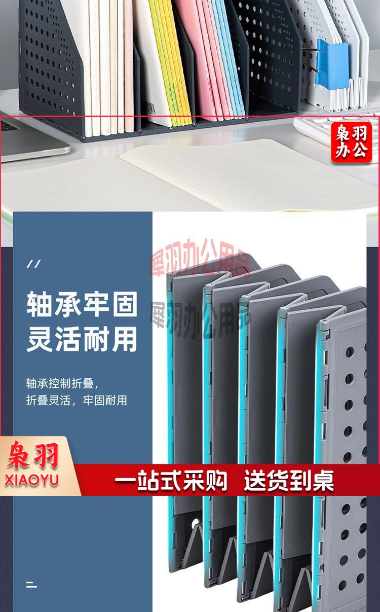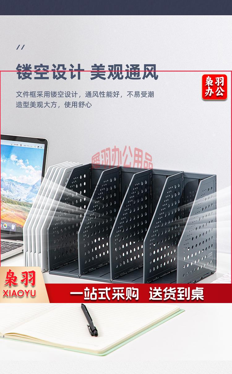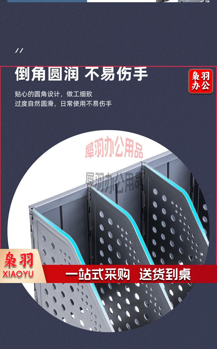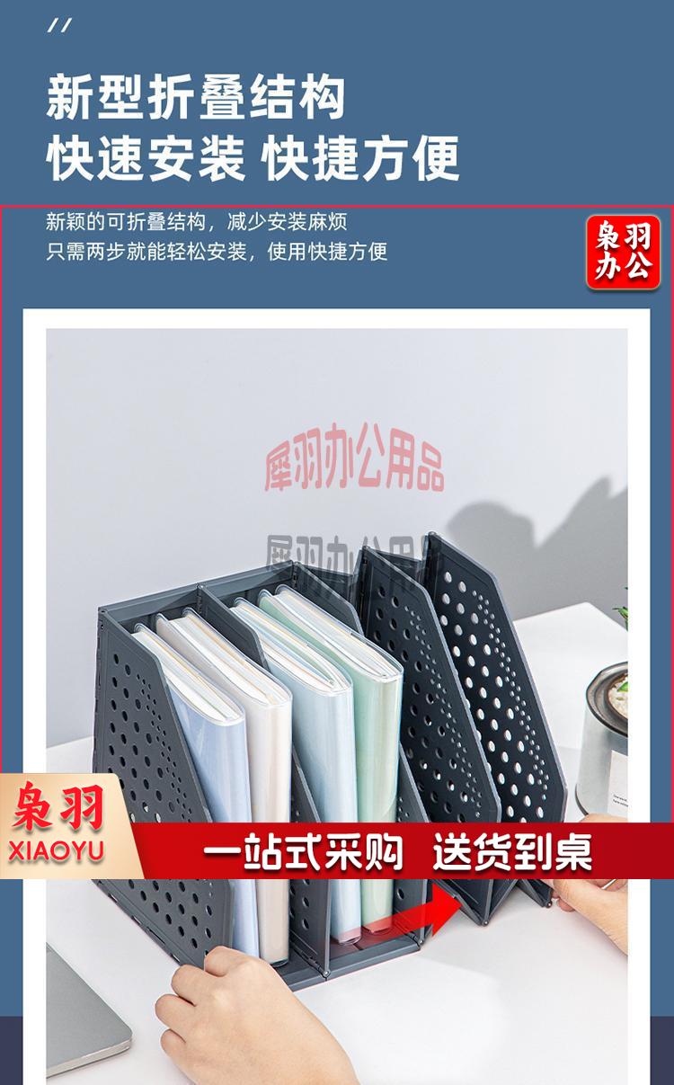 得力(deli)迷你折叠四联文件框文件架 办公室桌面多层资料架子 桌面文件收纳管理 浅灰79004
