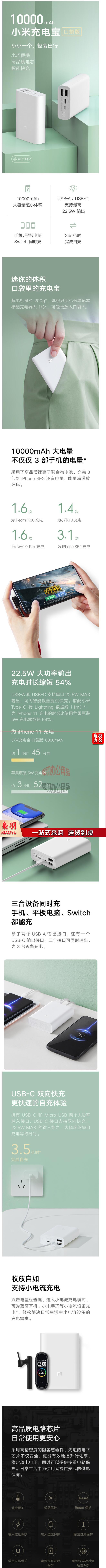 小米移动电源3 口袋版 原装10000毫安时 USB-C 22.5W双向快充PD20W适用小米10/红米苹果安卓redmi手机充电宝 hysm-250620111548