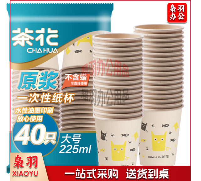 茶花 纸杯一次性杯子原浆水杯40只装大号225ML