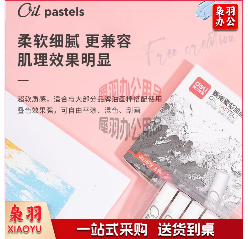 得力(deli)臻绚重彩白色油画棒 儿童画画蜡笔套装绘画工具diy画笔美术用品 彩盒装 中考考试礼物 HM721白色补充装纯白重彩6支
