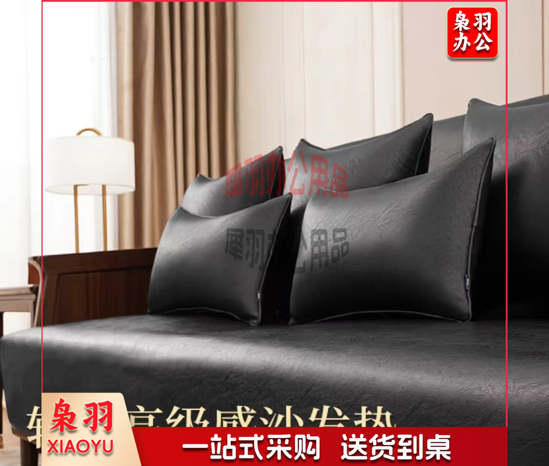 新中式防水皮革沙发垫 实木防滑坐垫 现代简约沙发垫 全盖防滑木沙发坐垫子 黑色90*140cm