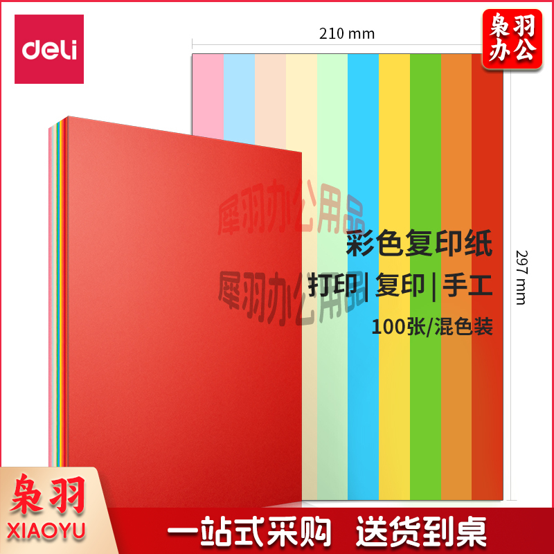 得力7757 10色混装 80g混装彩纸-297*210(混色)(100张/包)(25包/箱)