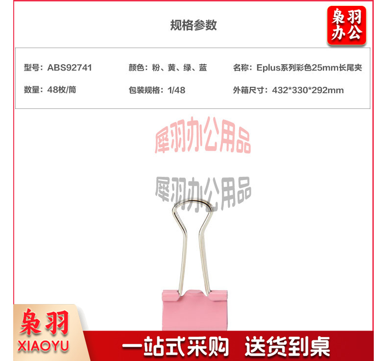 晨光 ABS92741 25mm彩色长尾夹 48个/筒