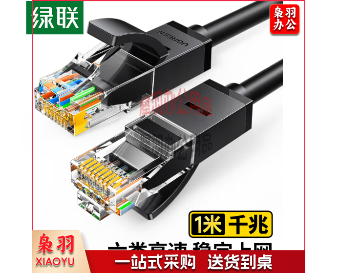 绿联(UGREEN)六类网线 千兆高速宽带线 CAT6类网络工程家用电脑监控跳线 8芯双绞成品线缆 1米 黑色20159