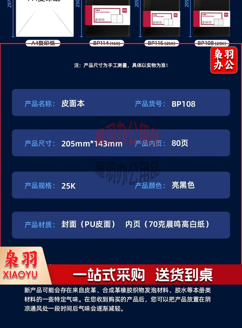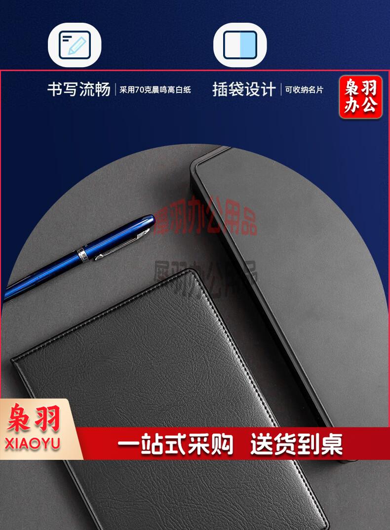 得力(deli)25K80张大号商务经典皮面本办公用品 会议记事本日记本笔记本子文具 黑BP108