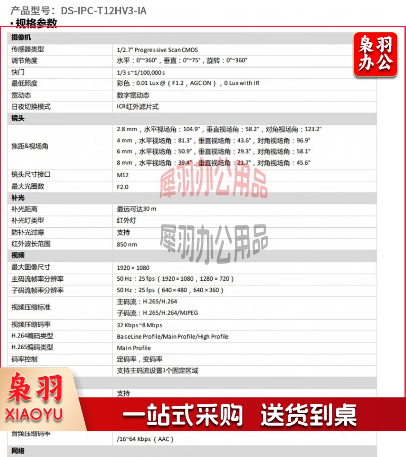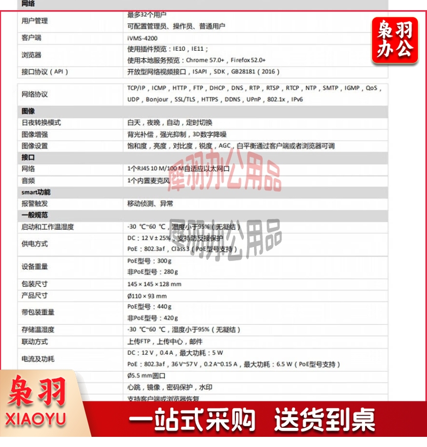 海康威视 监控摄像头200万红外PoE海螺摄像机内置麦克风|红外补光最远可达30米|强光抑制|IP66