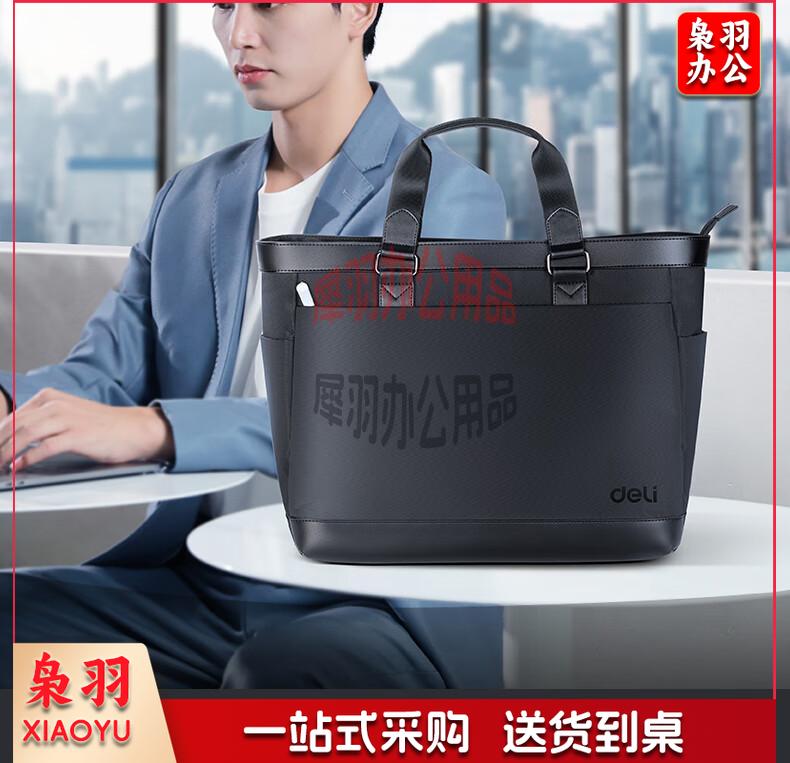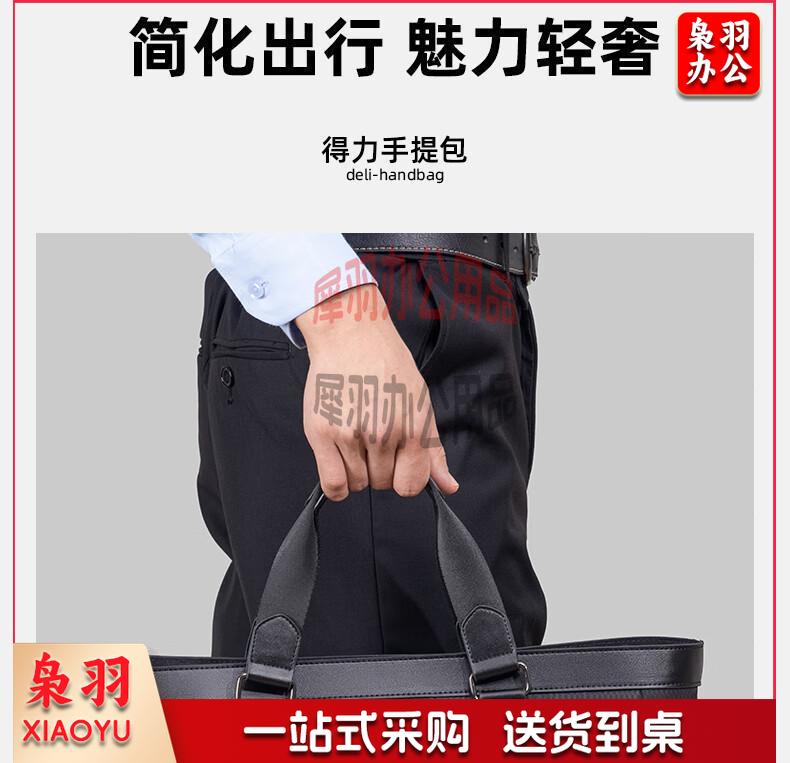 得力(deli)加厚立体办公手提袋/会议包/事务包/商务拉链袋公文包便携 URBIANO系列黑色BG113-09