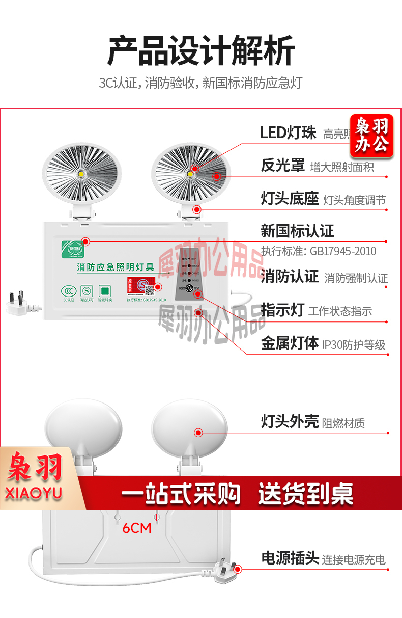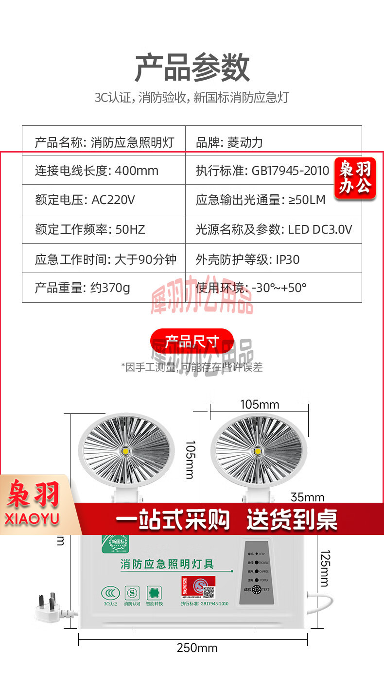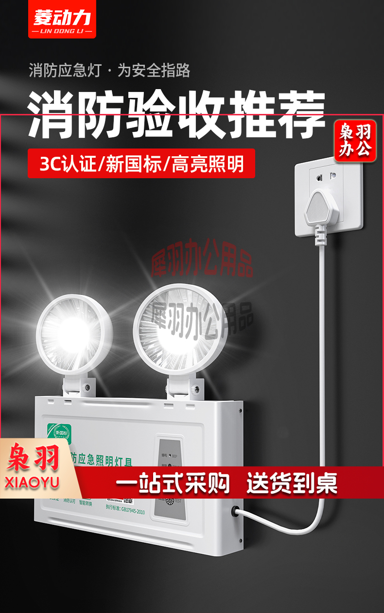 菱动力 新国标消防应急灯 停电应急充电式双头应急照明灯安全出口指示灯 极速达