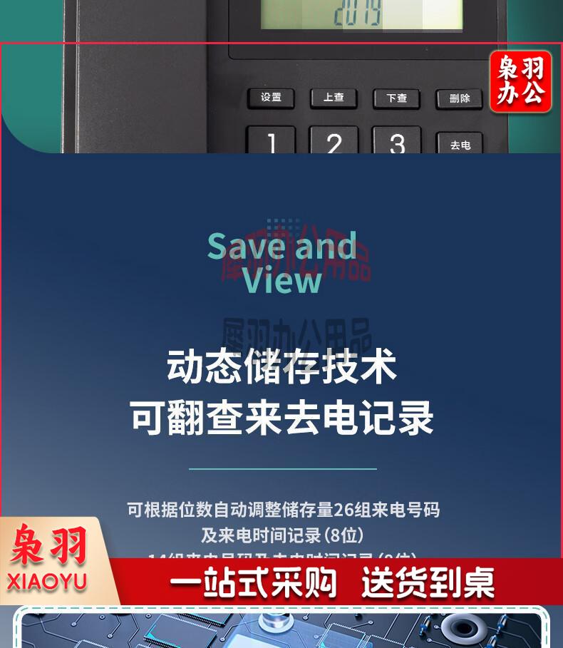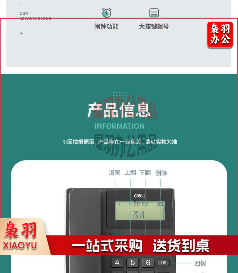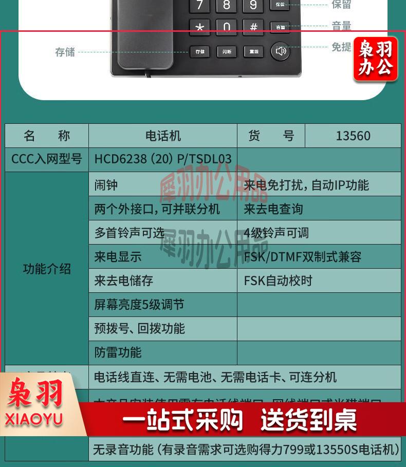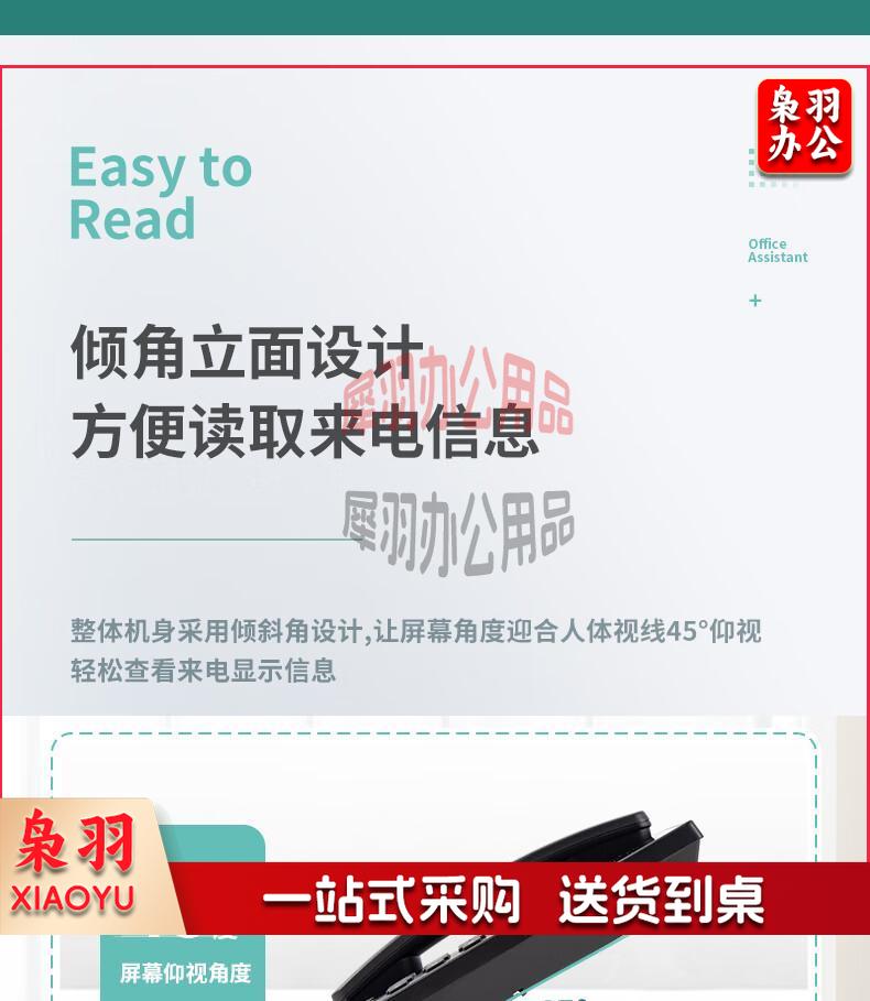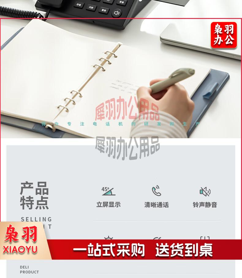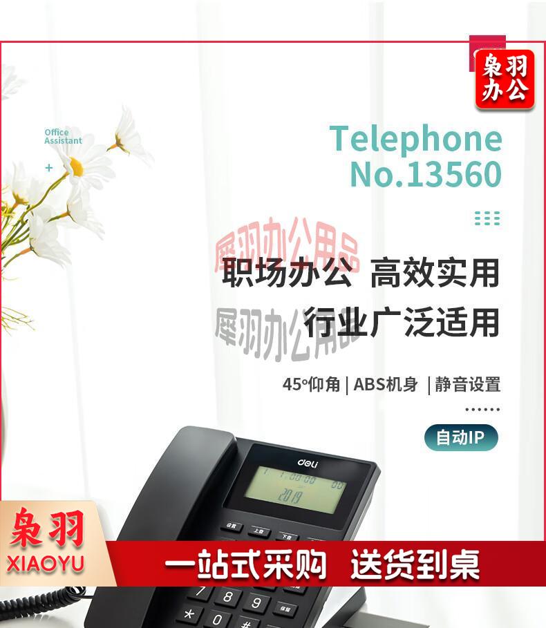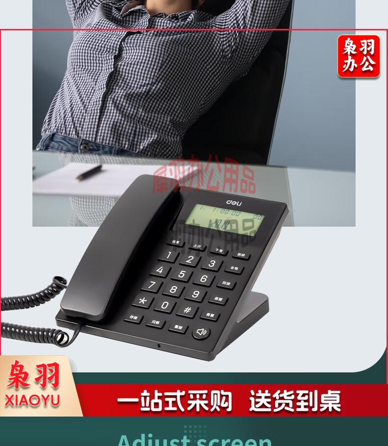 得力(deli) 电话机座机 固定电话 办公家用 45°倾角 亮度可调 13560黑 一年质保