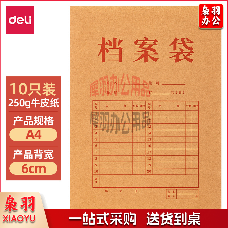 得力(deli) PP403-10纯浆牛皮纸档案袋(250g-6cm)(黄)(10个/包)