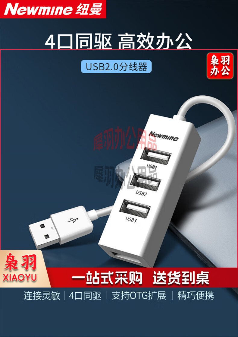 纽曼(Newmine)HUB210 usb分线器2.0高速4口HUB集线器 笔记本台式电脑一拖四usb扩展坞延长线转换器约1米黑色