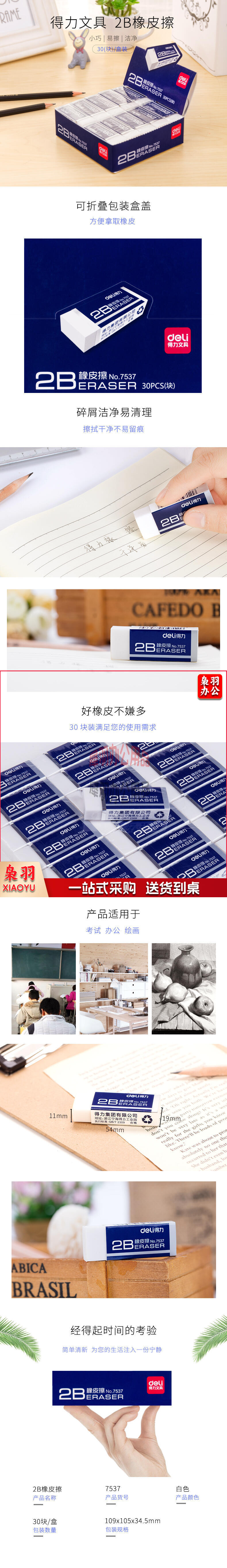 得力 7537橡皮擦(白)(块)