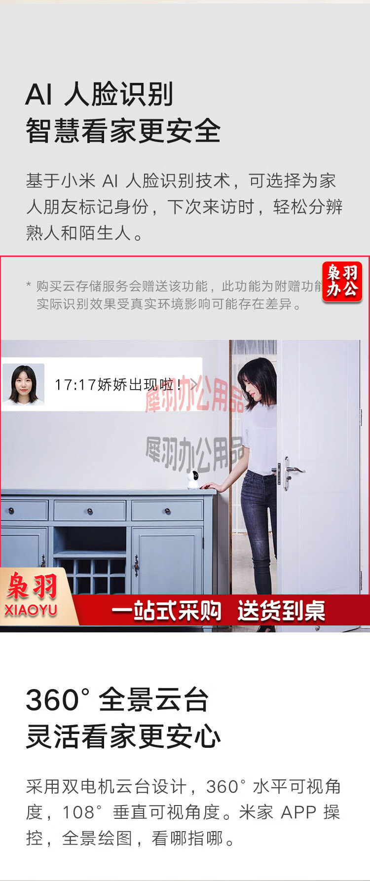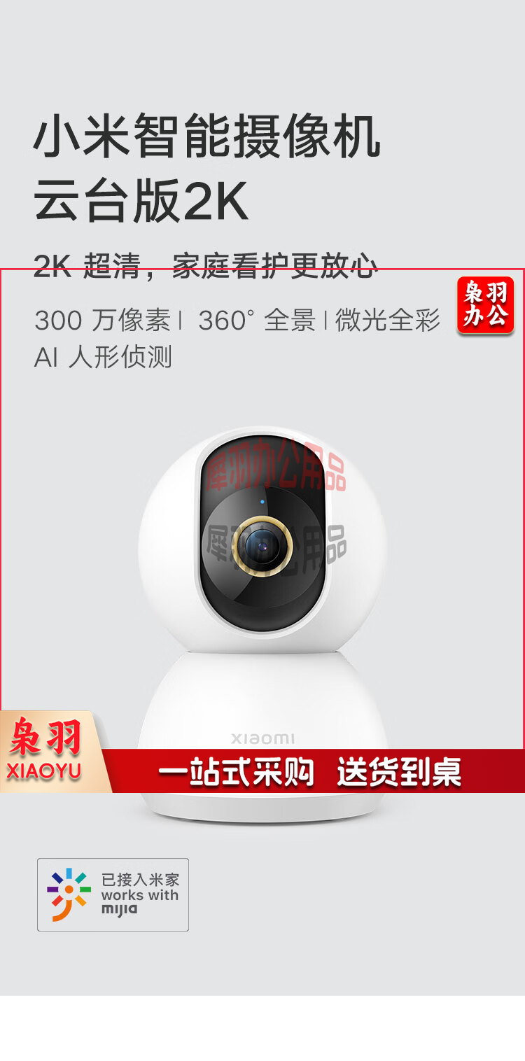 小米摄像头 云台2K版 家用监控器 红外夜视 看家 2K超高清 手机查看 智能摄像机 300W像素升级版