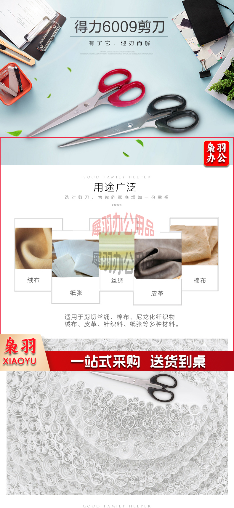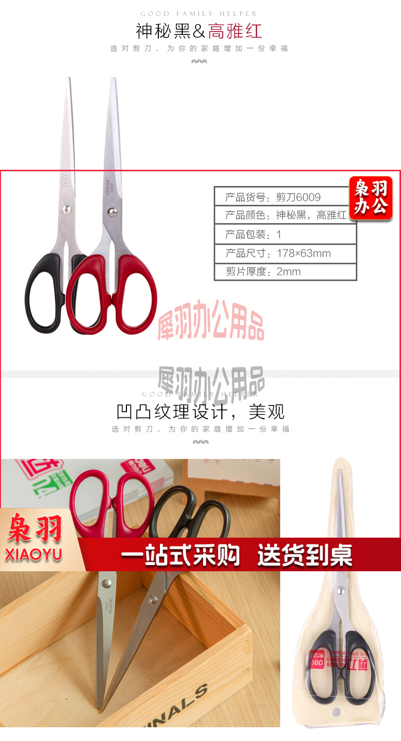 得力 6009剪刀18mm颜色随机(黑、红)XH.098