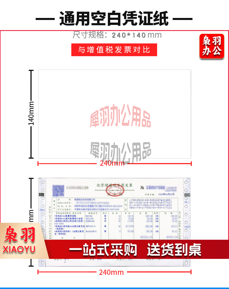 西玛(SIMAA) 空白凭证纸240*140mm 发票版通用会计凭证纸 500张/包 适用用友金蝶财务软件 记账凭证打印纸
