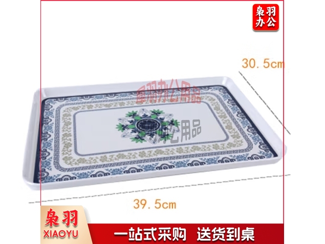 欧丽家加厚密胺青花瓷托盘长方形餐盘密胺水果盘餐具餐盘创意托盘茶盘密胺托盘方盘 (6015蓝花)