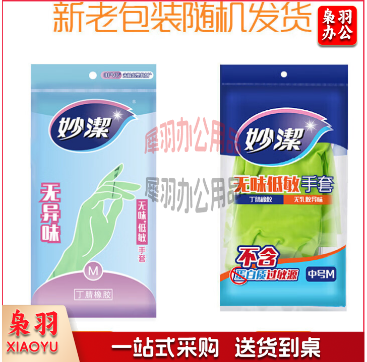 妙洁清洁橡胶手套 丁腈无味低敏厚皮实耐用防滑家务厨房洗碗洗衣 中号